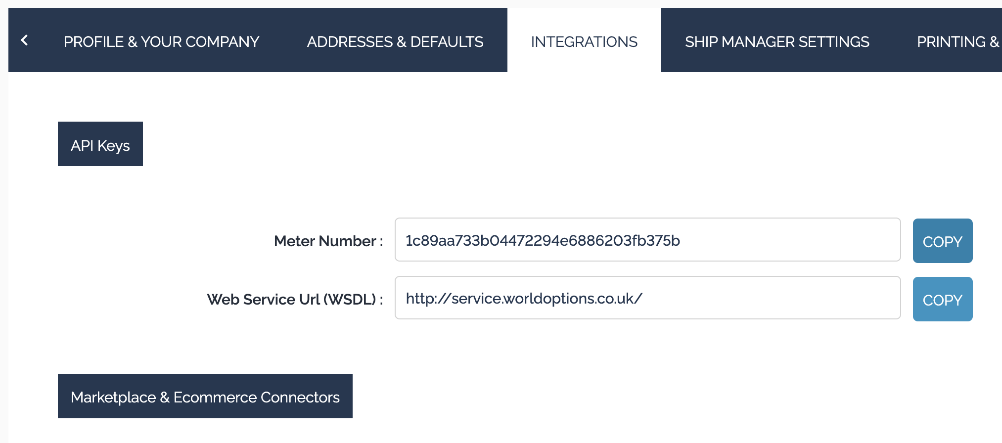 Each World Options account has a unique Meter Number that links your Shopify store to the World Options Portal. You can find it in your Customer Account.
